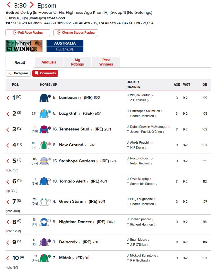 A derbyhétvége mindhárom Group 1-es futamát a Coolmore nyerte, de Westerberg úr “csak” Jan Brueghel-ben társtulajdonos, a Magnier-Tabor-Smith trió viszont mindháromban.
